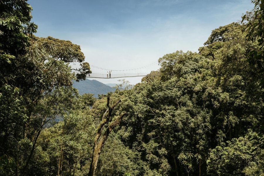 A perfect immersive retreat for your luxury once-in-a-lifetime Rwandan experience. Sleeping two, with your choice of a king-sized bed or two twin beds, this signature bedroom is secluded within lush treetops and opens out to a large, private balcony. The en-suite bathroom features double vanities, and a deep stand-alone bath and a walk-in shower that faces the forest. Mixing fresh, contemporary design with African craftsmanship, the sustainability philosophy is incorporated through responsibly-sourced timber and natural fibers. Rich culture is weaved into your Nyungwe journey with intricate details and regional curios, with traditional, geometric Imigongo artworks decorating the room.