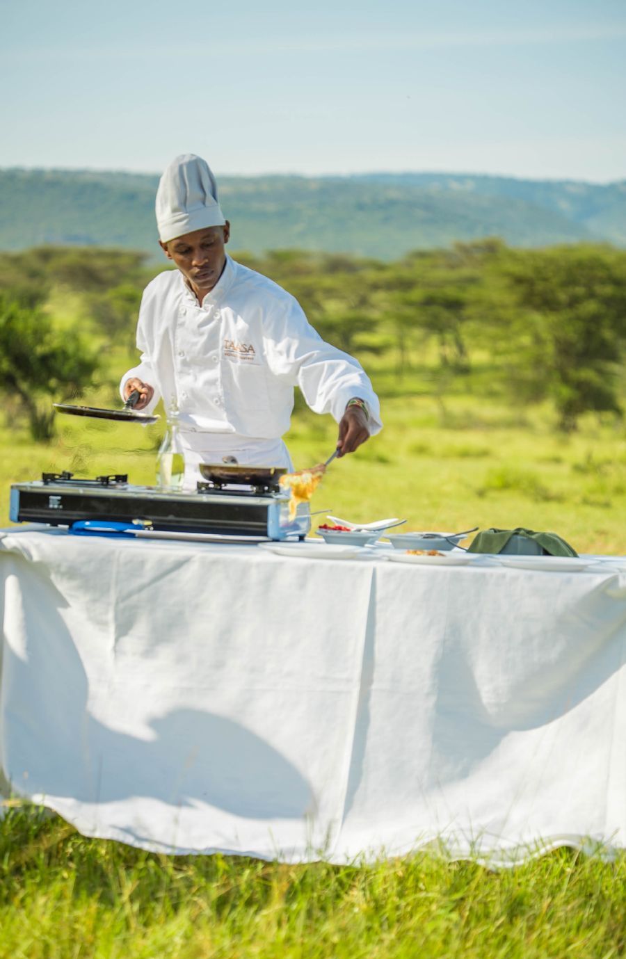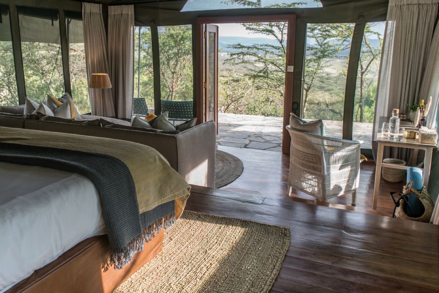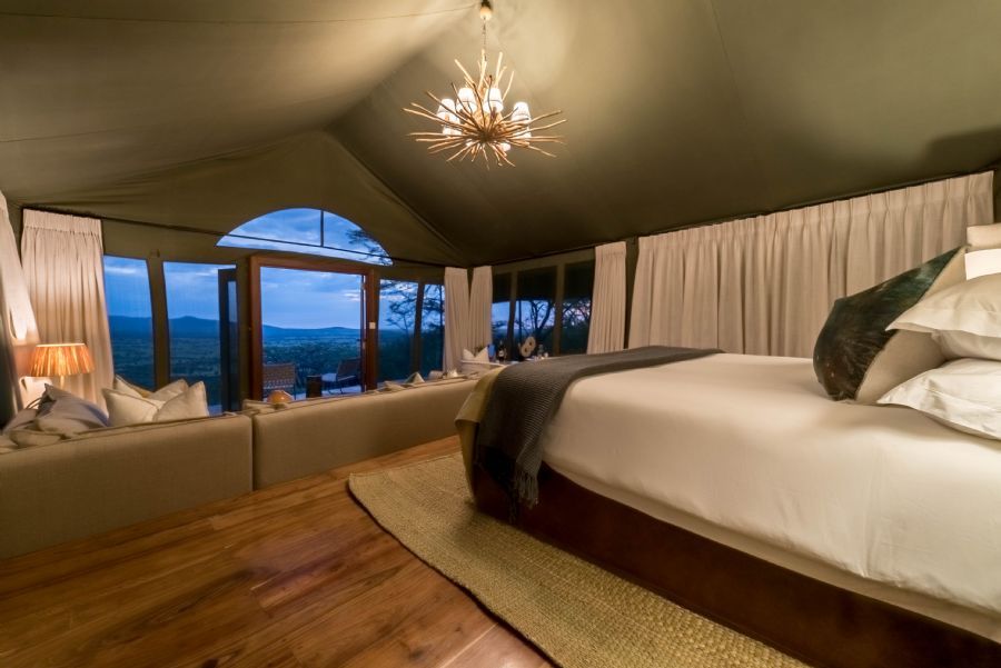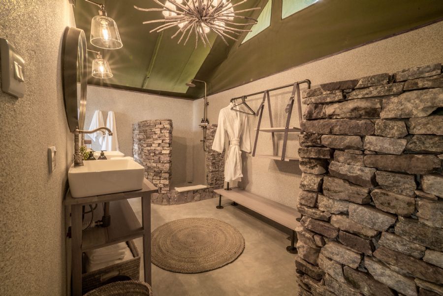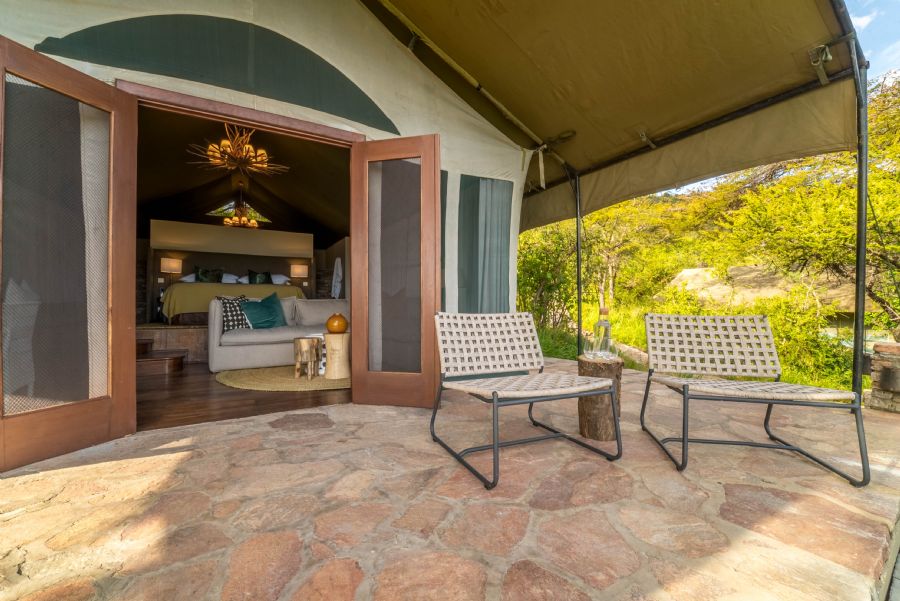 You’ll feel right at home between game drives in one of the luxurious and spacious en-suite tents. Expertly appointed, each one seamlessly blends modern comforts with uniquely African accents. Enjoy stunning views of the Lobo Valley from the serenity of your private veranda or curl up with a good book in your own cozy sitting area, beautifully furnished with a large sectional couch and desk. A raised sleeping area features either a king or twin sized beds. En-suite bathrooms are complete with a stone shower, double vanity, and hair dryer, along with sumptuous robes and towels – a touch of indulgence in the bush.