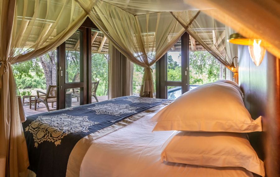 Each of Dulini Leadwood’s four expansive suites boast separate, yet inter-leading, lounge, bedroom and bathroom spaces, with floor-to-ceiling picture windows framing the picturesque the Sand River. The décor is lavish yet contemporary, from stone walls and screened floors to wrap-around picture windows allowing the bushveld views to flow in. The generous open-plan bathrooms are a memorable highlight, featuring a freestanding bath, walk-in rain shower and outdoor shower. The large wooden deck, with a private heated lap pool, the largest of all our lodges, creates an idyllic hideaway for relaxing and contemplating life, between morning and afternoon safari activities.