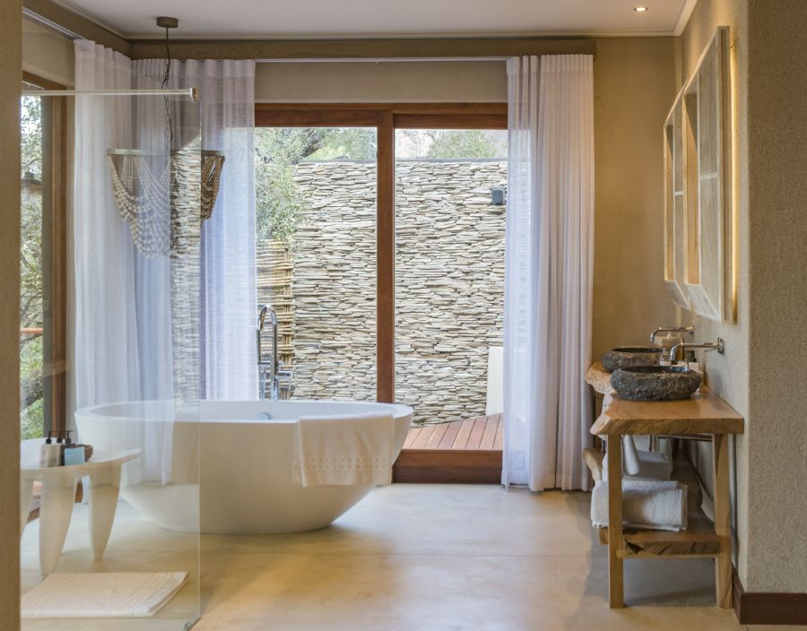 The six suites at Dulini River enjoy an unforgettable setting on the banks of the perennial Sand River, a magnet for big game and birdlife throughout the year. The expansive outdoor decks, complete with heated plunge pool and outdoor shower, allow guests to watch wildlife from the comfort of their suite, while indoors, the double-volume suites are open-plan and airy, flowing seamlessly between the dressing area, bedroom and bathroom. The Dulini River suites are decorated in a soothing palette of natural hues and earthy tones, inviting you into a luxurious cocoon, in the midst of this pristine wilderness.