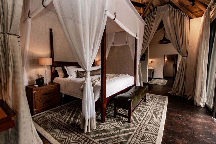 Each of the six luxury suites at Dulini Moya is decorated in a timeless blend of classic safari charm and indulgent comfort, offering a private haven of peace and serenity overlooking the Mabrak River. Floor-to-ceiling windows flood the suites with natural light and bushveld views, allowing you to enjoy this remarkable and picturesque Big Five wilderness, from the comfort of your suite. Each suite includes a spacious lounge and airy bedroom, with a luxurious bathroom offering a shower and freestanding bath to savor the moment in. Throughout the suite, sliding doors open onto a wide private deck with a heated plunge pool and outdoor shower where you can enjoy the night sky and wild sounds of nature’s amphitheater around you.