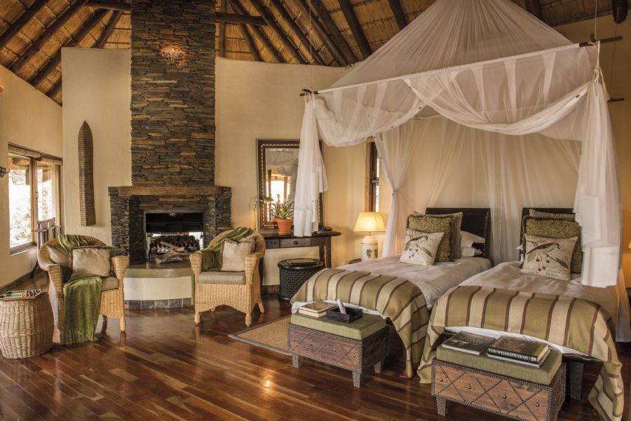 En-suite bedrooms have luxurious amenities and are air-conditioned, with ceiling fans and gas fireplaces for added comfort. Large bathrooms have a fireplace, double baths and basins and an outdoor rock shower.