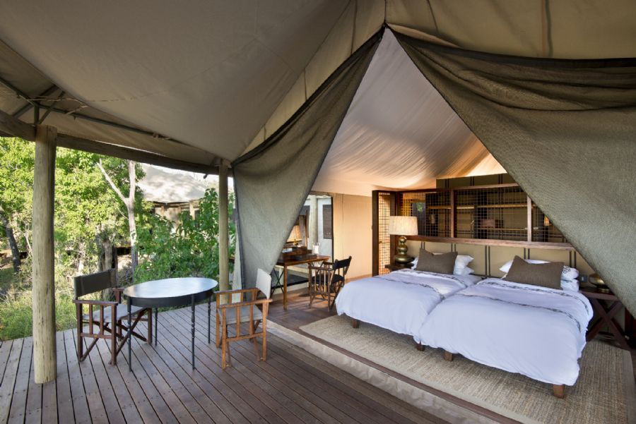 Each spacious tented suite features a luxurious bed, an extended private veranda complete with a shaded sitting area, dreamy hanging daybed, and glorious Delta outlooks. The open-designed ensuite bathroom has both an indoor and screened outdoor rain-shower, with a flush toilet enclosed by stylish canvas panels.