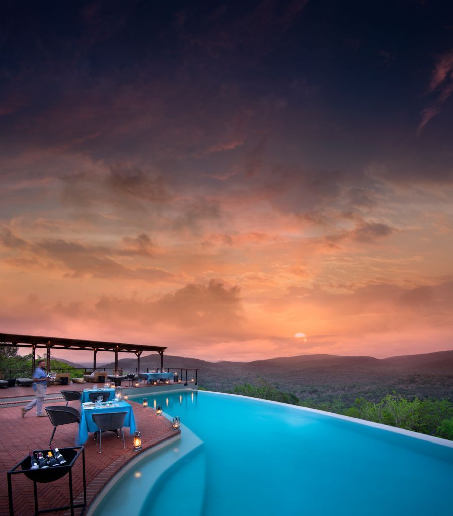 &Beyond Phinda Mountain Lodge boasts 16 suites, each cresting the mountain’s edge, and offering breathtaking raptor’s eye views of the reserve below. All 16 luxurious suites boast a spacious room, with large expansive glass windows overlooking the reserve, and an elegant ensuite bathroom with the same magnificent view. Each bathroom has a gorgeous bath, and both a large indoor and outdoor shower. The suite also hosts a beautifully appointed personal bar, a private sitting area, and a spacious decked veranda with a private rim-flow plunge pool and outdoor lounge.