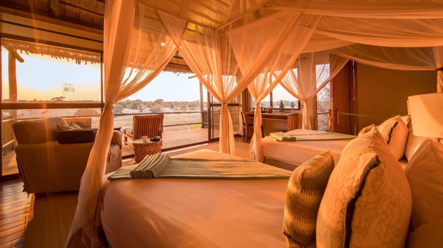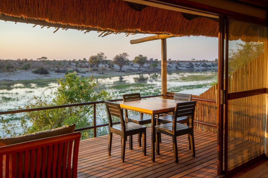 The lodge features twelve luxurious thatched and glass-fronted suites with en-suite bathrooms, each unit raised on a wooden platform. With their prime location facing east and on the edge of the Boteti River, each guest room offers exceptional views across the river below and into the Makgadikgadi Pans National Park. Room supplied with: fans, mosquito nets, hairdryers, tea & coffee facilities, multiple adaptors, a range of biodegradable bathroom amenities.