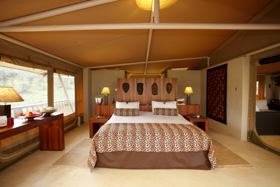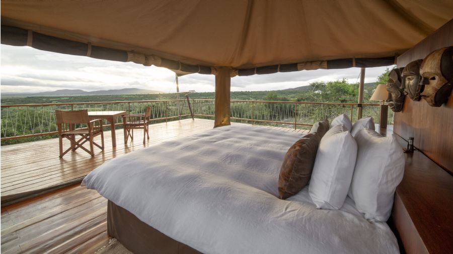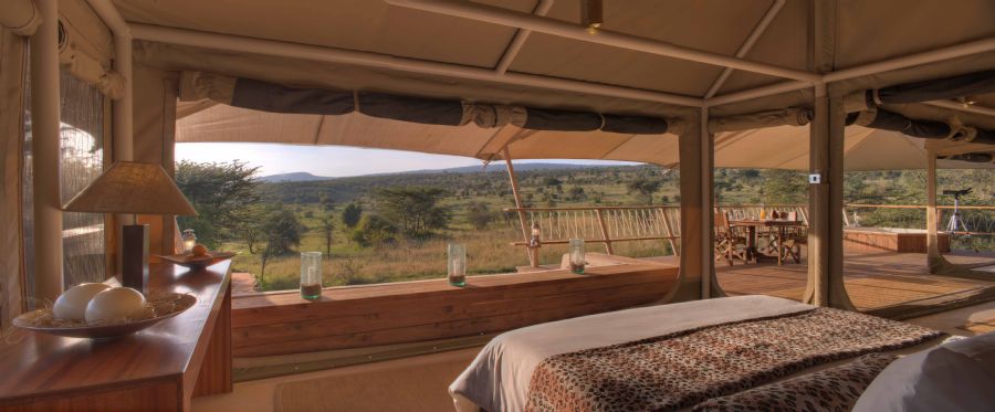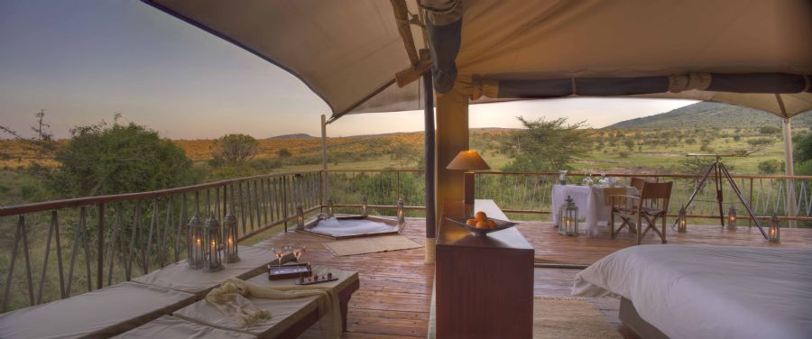 Mara Bushtops has been designed to blend into its surroundings, minimizing the visual and environmental impact, whilst providing every comfort to guests. 12 spacious and fabulously appointed luxury tents (think of a 5-star hotel room, under canvas) can be found by following private paths from a shared space, to secluded havens of privacy and calm. Opening on three sides, the tents are named after the wildlife which can be seen wandering past the Camp. Bounded by more than a 1,000 square-feet of private wooden decking, each tent has its own hot tub on the deck, an outside shower, writing desk, dining table and telescope. All tents are equipped with a safe, hair dryer, 220v AC.