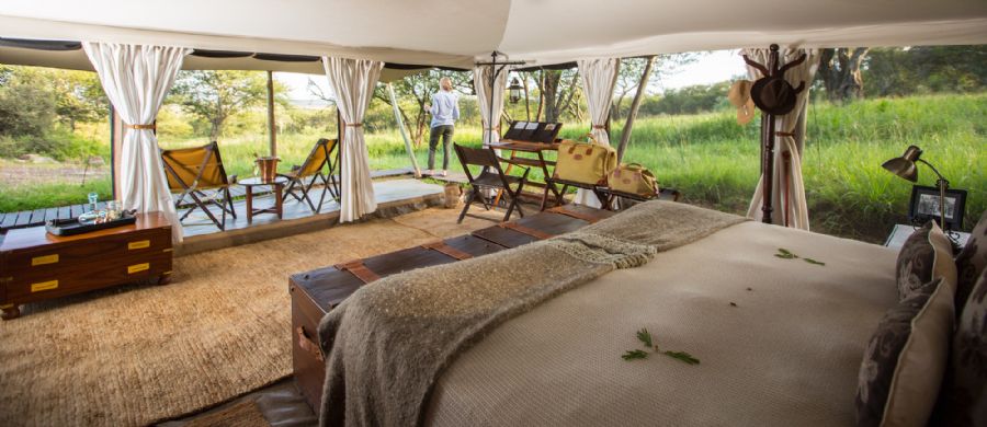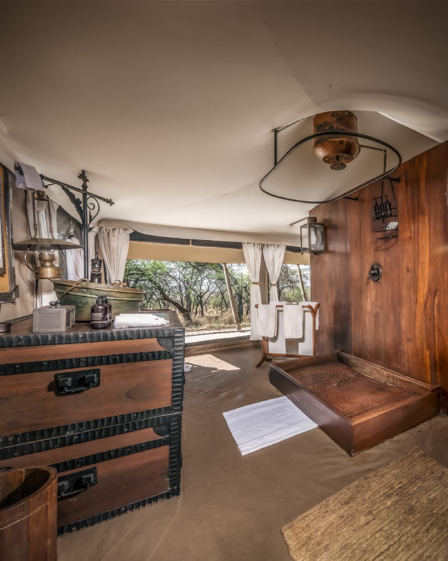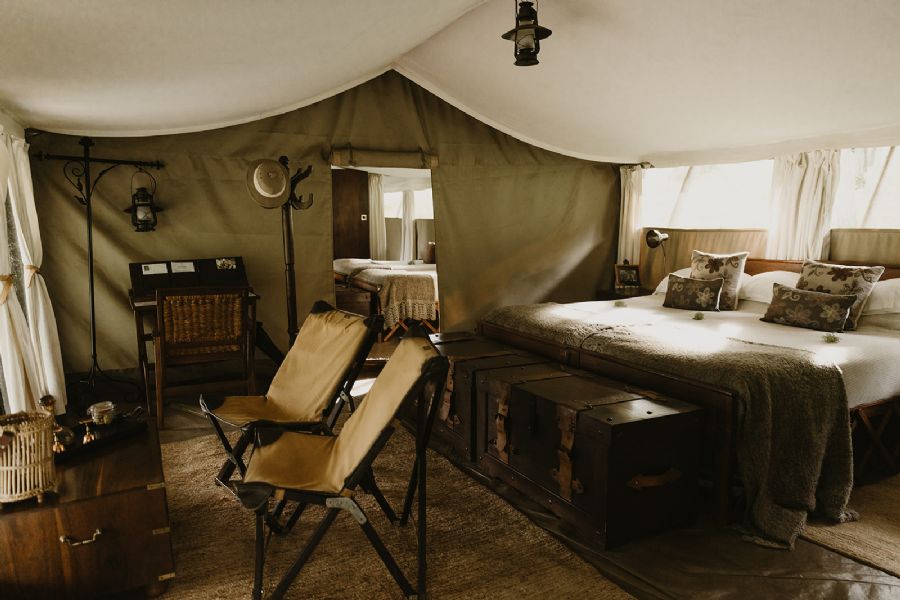 Comprising of twelve tented accommodations - inclusive of one 2-bedroom family tent - Serengeti Pioneer Camp evokes the very best of an era long-gone but certainly not forgotten. The enclosed tents with a canvas-covered floor adorned with throw carpets, luxuriant soft furnishings, a writing desk and stationery set. Each tent has en-suite facilities including a flushing toilet, vanity basin, and period-style hot showers.