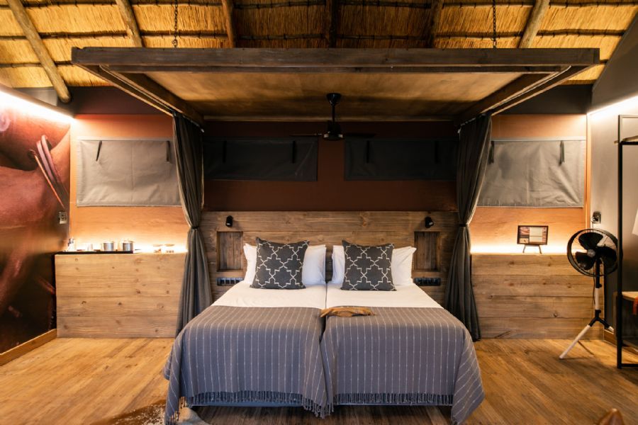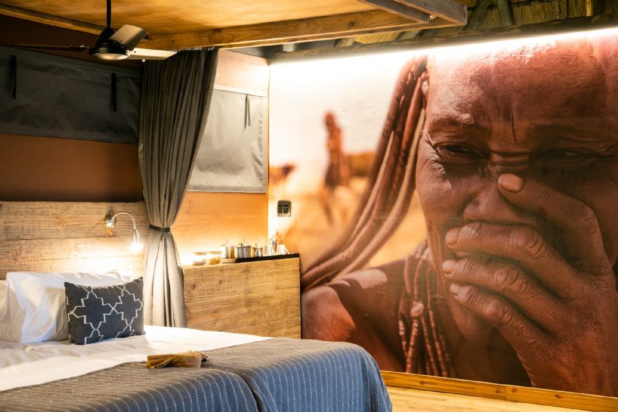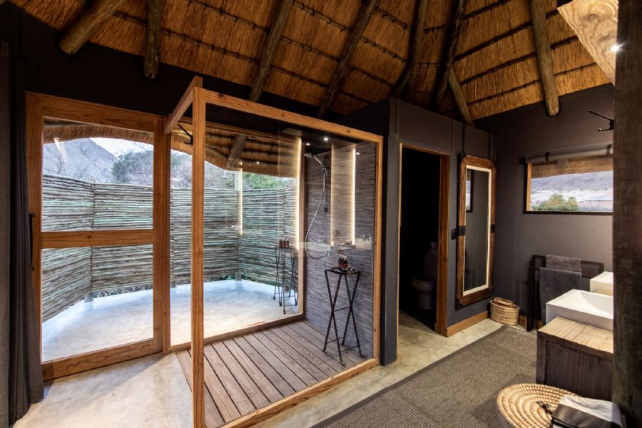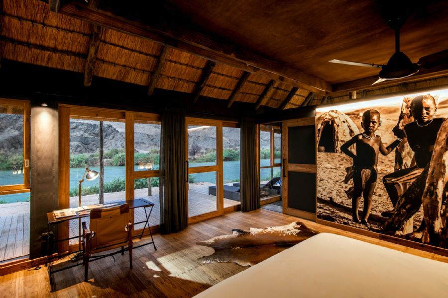 The eight chalets (including one family unit) are set on elevated decks and crafted in wood, canvas and thatch to create a unique camp that is at one with its surroundings and celebrates the culture of the Himba people. The Ozonganda (Herero, meaning “main area”) affords spectacular views over the Kunene River.