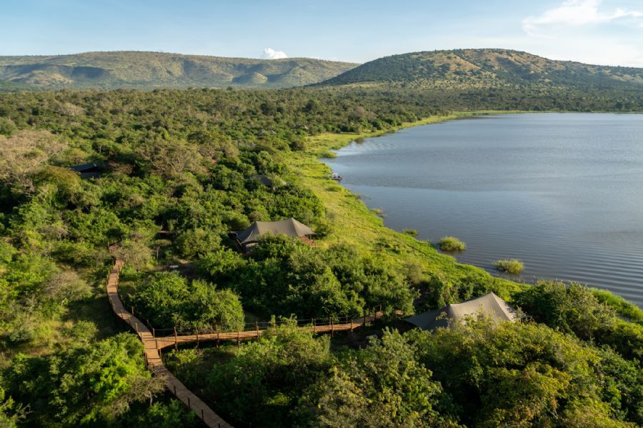 Six spacious and airy tented guest rooms offer uninterrupted views over Lake Rwanyakazinga while Magashi’s main area comprises a luxurious lounge and dining area, bar and pool, as well as an expansive viewing deck with convivial fire pit. The architecture and interiors pay homage to traditional Rwandan culture.