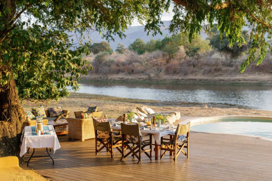 Time + Tide Chongwe House is a two-story, four-bedroom private house set on a tranquil stretch of the Chongwe River with the beautiful mountains beyond. Designed to celebrate the peaceful setting, the house features river pebble accents and furniture carved from a winterthorn tree. Gather together in the spacious lounge and verandah, reconnecting with each other away from the busy pace of modern life. Relax into the laid back ease of the Lower Zambezi - watch the elephants wading across the river, listen to vervet monkeys scampering in the canopy above. Come, let this magnificent African paradise be the backdrop to quality time reconnecting with friends and families.