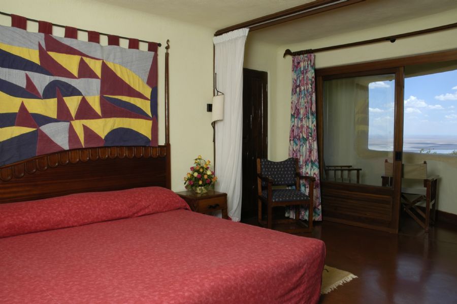 The rooms are housed in circular, double-story, whitewashed ‘rondavels' (traditional circular buildings with conical thatched roofs), which are strung out along the edge of the cliff so as to allow for maximum views. Each spacious circular room has its own small veranda while the interior décor reflects the blue of the lake and the pink of its flamingos. Behind each bed hangs a spectacular hand-woven rug, while the furnishings and fittings reflect traditional Maasai beadwork.
