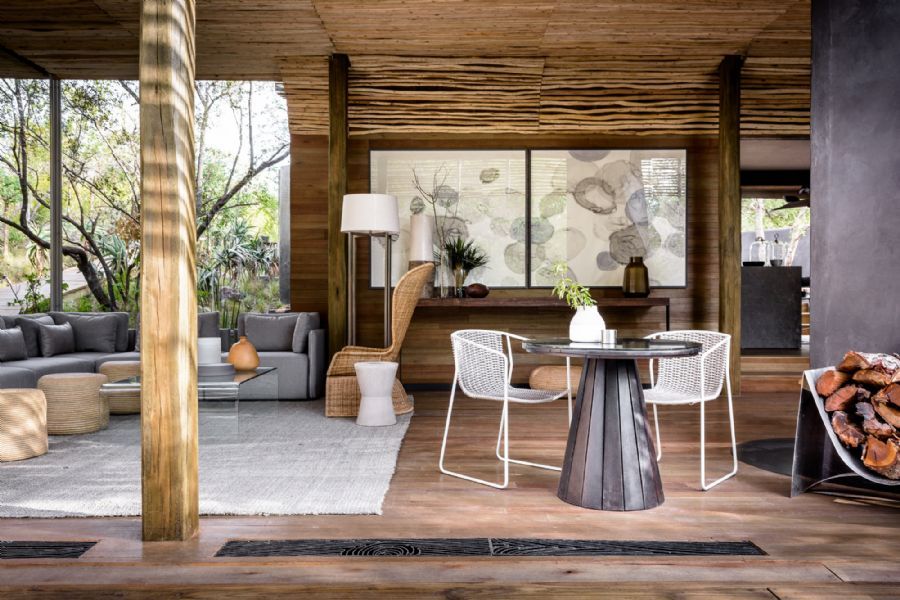 Located in a private concession in the Kruger National Park, Singita Lebombo Lodge’s cliffside setting high above the N’wanetsi River captivates guests with its soul-restoring wilderness views. Seamlessly integrating its remote wilderness setting into soothing, expansive and contemporary spaces, Singita Lebombo Lodge weaves the captivating sights and sounds of the bush into a deeply meaningful and restorative guest experience. Glass-walled and light-filled, the 13 contemporary suites ensure deeply moving connections with nature, while expansive decks and daybeds for sleeping under the stars add to the enchantment. The main lodge area features a 82 foot (25-meter) lap pool, rooftop terrace, multimedia room and library, ‘bar-deli’ and state-of-the-art wine studio, and the magnificent outdoor spaces welcome unhurried meals on the edge on the bush – and the enchantment of starlit dining. Throughout the lodge, the imaginative use of glass, wood, steel, and layered fabrics in muted shades invites the surrounding landscape indoors.