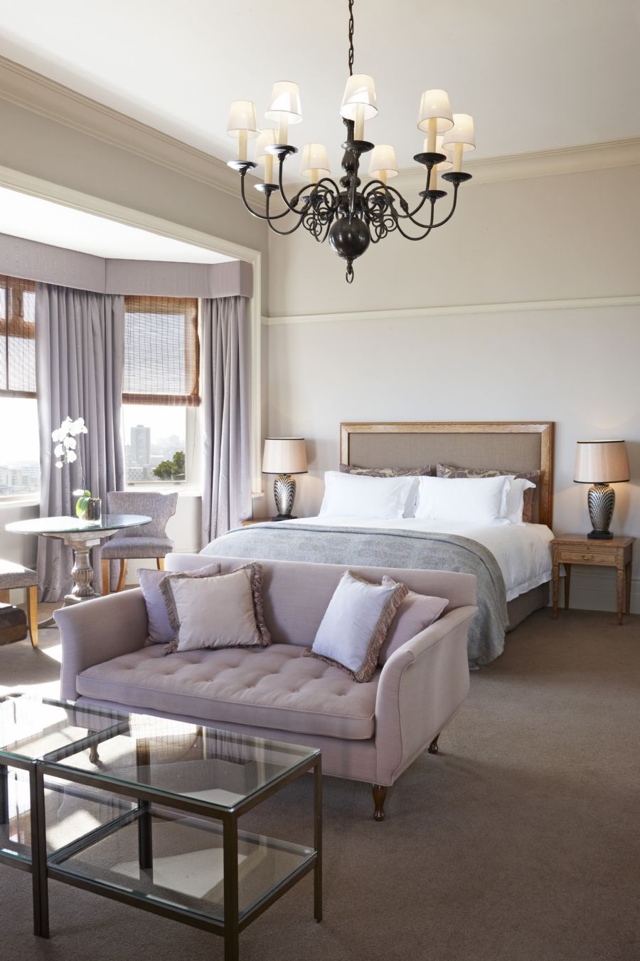 Soft green and caramel hues adorn this warm and intimate space, which features a sparkling chandelier dancing in a glamorous floor-to-ceiling mirror. A blend of circle-patterned fabrics, beech-wood cabinets, and faux-leather ottomans fill in the details, giving this cozy abode a distinctly contemporary feel. As per all rooms at Ellerman House, the Classic Room is en-suite and includes satellite TV, air conditioning, wireless internet, heated floors, and a complimentary minibar.