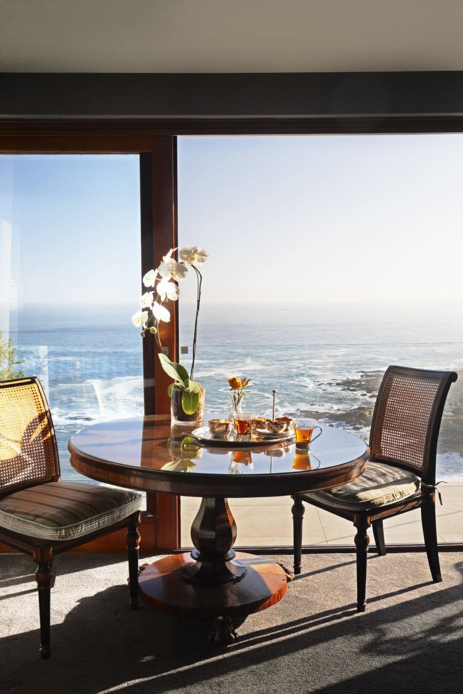 The Ellerman House Suites are the epitome of elegance and comfort, with large rooms styled in a beautiful layering of colors, fabrics and textures. Dramatic sightlines set the mood from large sitting rooms that overlook an oceanfront balcony, accessible by French doors. Guests can entertain friends in the elegant dining area, relax in the lounge, or savor breathtaking views of the Atlantic on the private wraparound balcony. Throughout the rooms, prized paintings and sculptures by South African artists add to the stylish bravado. The Ellerman House Suites are en-suite and include satellite TV, air conditioning, wireless internet, heated floors, and a complimentary minibar.