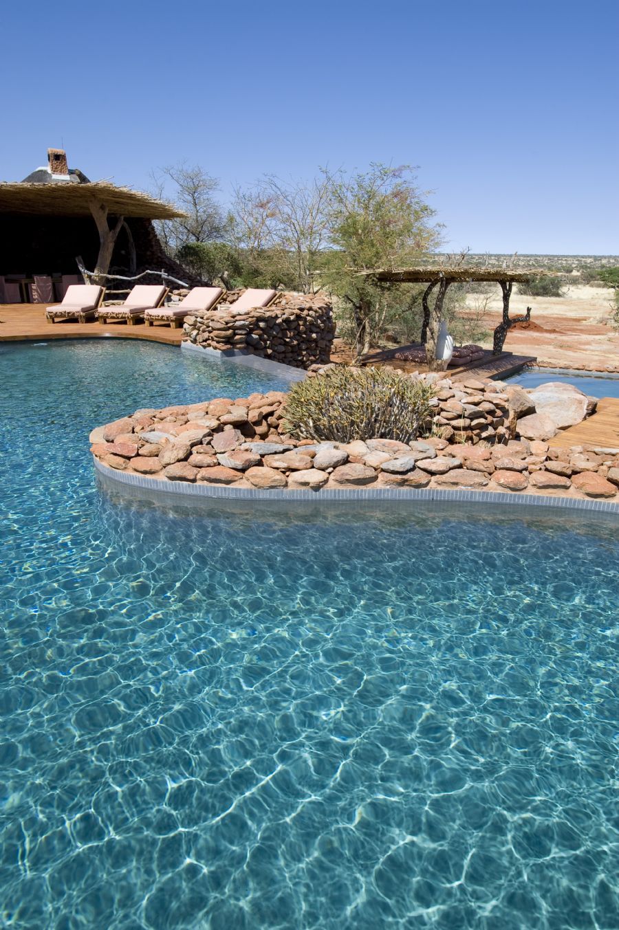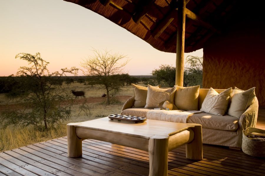 The main property, the Motse, nestles at the foot of the Korannaberg Mountains, facing westwards across the grasslands of the Kalahari. Motse means “village” in Tswana and the village consists of just nine spacious and secluded “legae” (another Tswana word, for “little house”) or suites.