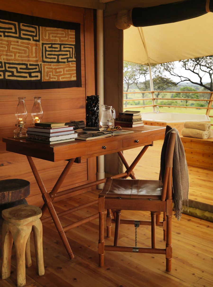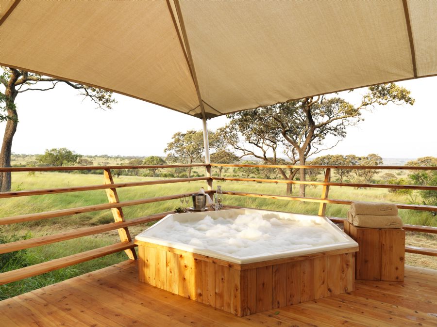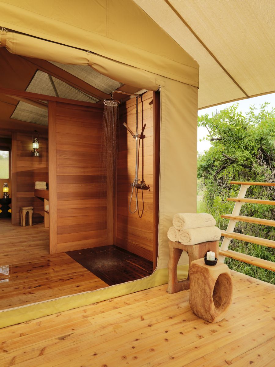 The specially designed tents are spacious, beautifully furnished and offer everything you could need for a truly memorable stay. Imagine taking an open-air shower beneath the warmth of the African sun, or unwinding in your own hot tub after an exhilarating day on safari. Bedecked with beautiful wooden flooring, each tent’s lavish facilities include an en-suite shower area, large private terrace, a hot tub, writing desk, 24-hour butler service, 24 hour power, a dining table (if you prefer to eat privately), and massages in your tent whenever you wish.