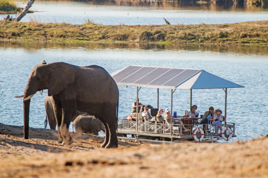 Chobe Game Lodge can accommodate up to ninety-four people in total luxury. Each of the forty-four rooms at the lodge is river-facing and air-conditioned, featuring overhead fans, complimentary mini bar, en-suite bathrooms and a private terrace.