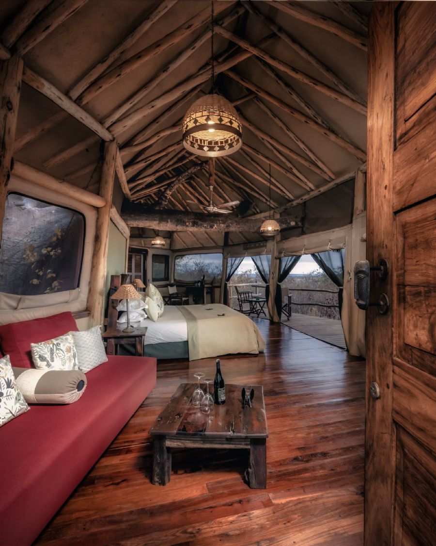 On the path of an annual elephant migration, Tarangire Treetops sits alone in a 312km2 private wildlife area bordering Tarangire National Park, amid a landscape of rolling, baobab-studded hills. Elevated “treehouse” suites are perched high up with views over the adjacent baobab and marula trees, giving Tarangire Treetops an adventurous and exotic feel. Twenty suites, with a wide private balconies, are lavishly furnished. Natural materials are blended with contemporary Africana décor, to provide guests with a unique and most memorable safari experience. All the suites are either sunset facing, sunrise-facing or overlook the camp’s waterhole and animal trail. Encasing an impressive baobab tree, the spacious and tranquil reception, lounge and dining room overlook the swimming pool and a waterhole that sees a steady flow of wild animal visitors. With the natural beauty of the hills and dry riverbeds begging to be explored, guests can enjoy guided walking safaris, day or nighttime game drives and the enchantment of bush dining.