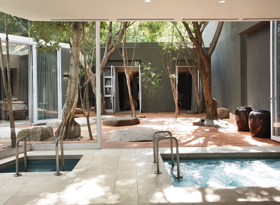 The three stand-alone Saxon Luxury Villas offer the ultimate African hospitality and can be booked in their entirety for sole use by guests who prefer the privacy and exclusivity of a garden setting. Each Villa has a main lounge and dining room in addition to a breakfast area and bar, with 24-hour butler service. The Villa guests can enjoy the privacy of the terrace and plunge pool overlooking the gardens, or alternatively make use of the main Hotel facilities. A private elevator leads from the parking area to each of the Villas.