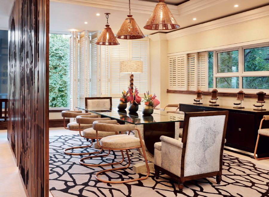 Each suite has its own entrance hall, guest bathroom, dining room and lounge opening onto a balcony. The spacious Presidential Suite incorporates a king size four-poster bed and walk-in cupboards. The generous separate bathroom has a freestanding bath, walk-in shower and abundant fresh white towels. There is also a fully equipped butler’s kitchen and 24-hour butler service. Latticed shutters ensure privacy and open onto views over the gardens and northern views of the Johannesburg city skyline.
