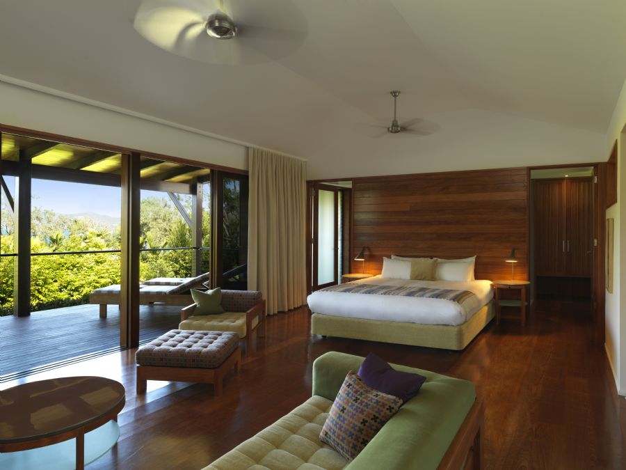 Relax and unwind in a sun-filled Leeward Pavilion, creatively designed to celebrate the Whitsundays’ legendary sunsets. Southwest-facing, the freestanding Leeward Pavilions provide Hamilton Island luxury accommodation in Australian tropical island style.Louvers allow the sea breeze to flow through, and the comfortable lounge area leads to a private sundeck shaded by Eucalypts. Cool polished floors and timber details, a subtle colour palette and stylish decor, create a uniquely relaxed beach house ambience.