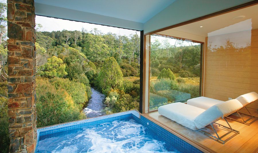 Jagged pink granite peaks jut from lush green mountains on the Freycinet Peninsula that is enclosed by Wineglass Bay and Hazard Beach. The beautiful Tasmanian coast is highlighted by crystal waters, white beaches, green hills and valleys. Saffire Freycinet is located just where mainland Tasmania meets the untouched peninsula. This gorgeous luxury lodge combines comfort and privacy with the stunning natural world of the Australian coastal area. The streamlined building offers boutique accommodations and ultimate relaxation with just 20 suites. Tasmanian timber furniture is cozy yet stylish; the contemporary design pairs perfectly with the building's modern architecture. Private decks and courtyards ensure that guests will have unrivaled views of the incredible mountain ranges and coastline. Its seaside location means that the finest food and drink is readily available—the climate lends to striking cool-climate wines, and local fishing areas provide endless fresh scallops, deep-sea fish and oysters.