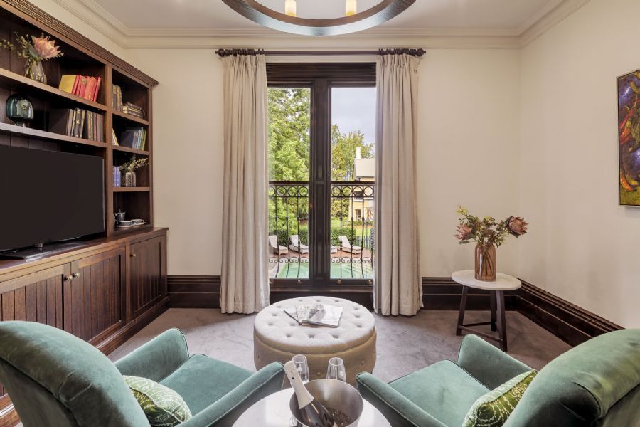 Please note this room is a split level suite, set across 2 levels with stair access. Relax in your luxurious bathroom, complete with spa bath and enjoy the view across our gardens and grounds to the heritage section of the house from your private sitting room on the lower level.