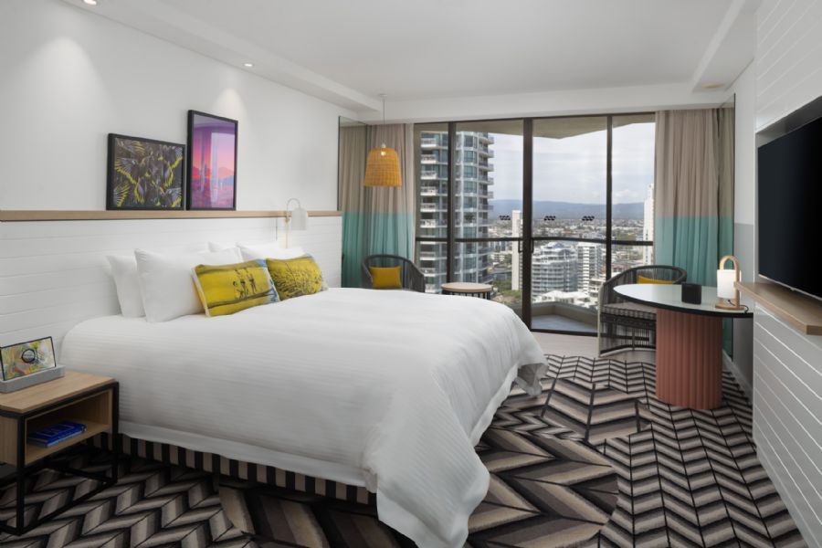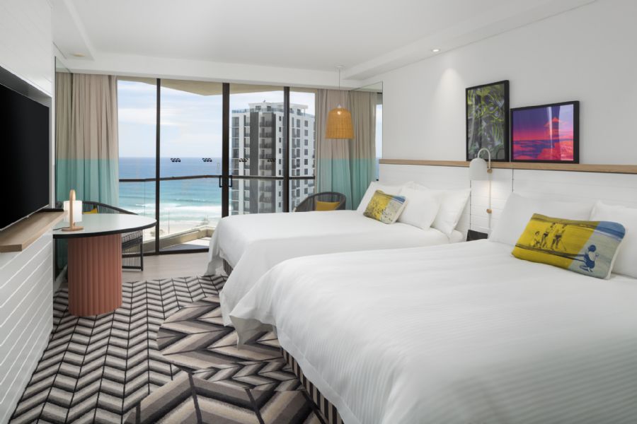 With city view or ocean view, king, double or suite options, you'll feel the vibrations of the city or the serenity of the sea at QT Gold Coast. As a blissful day comes to a close, watch the sun dip down over town or be lulled to dreamland by the waves from your private balcony—all before you spread out in the softest bed. In the morning, slip into your Missoni robe, and freshen up in a bathroom stocked with sumptuous Kevin Murphy amenities and a Dyson Supersonic hairdryer. Kitted out with all the amenities you need, your oasis includes Nespresso pods and T2 teas.