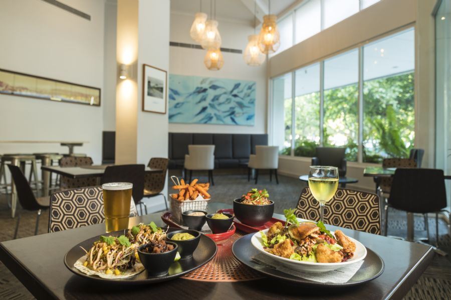 The beautifully appointed rooms have private balconies, most with superb water views and hotel facilities including an outdoor swimming pool, and boasts Bushfire Flame Grill offering Churrasco Brazilian style BBQ with Australian flair.