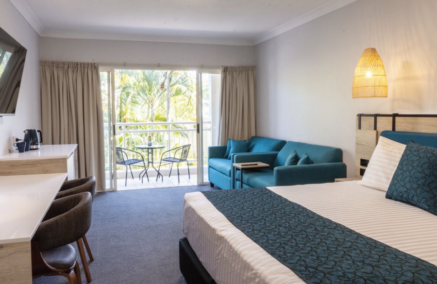 Perfect for couples or small families (up to 4 guests), these rooms offer both comfort and space. Each Hotel Deluxe room boasts essential amenities, including air conditioning, an ensuite bathroom with a walk-in shower, a hairdryer, a TV, a mini-fridge, and coffee/tea-making facilities. Located a short walk from the Resort Centre and just 70 meters from the beach, these Deluxe Hotel rooms are nestled in peaceful surroundings with views over the picturesque waters of Moreton Bay. Each room is generously sized, featuring air conditioning and a private furnished balcony, providing the ideal setting to witness stunning over-water sunsets. With a choice of King or Twin layouts, Hotel Deluxe rooms offering extra comforts such as a welcome gift of wine and chocolates, plush white towels, bathrobes, slippers, and a guaranteed ocean view.