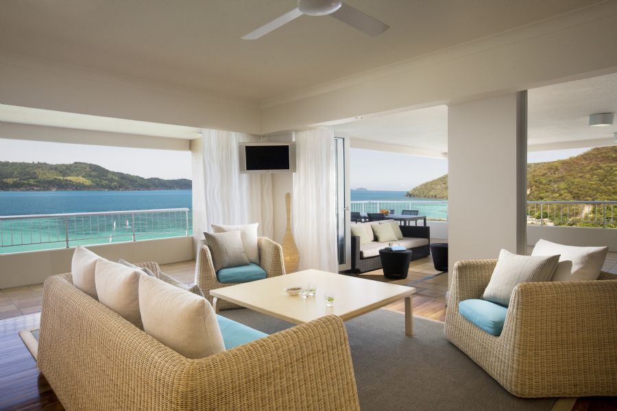 Hamilton Island's Reef View Hotel resort-style Presidential Suites have all you could wish for, sleeping up to six guests. There’s room on the large terrace to cook up a barbecue and dine under the stars, and sun lounges for daytime relaxing. Downstairs, the spacious lounge room and separate dining area have a bright and breezy beach house feel and Coral Sea views. Each bedroom has a marble en suite bathroom with a spa bath to soak in, as well as a separate shower. The suite’s two flat-screen TVs have pay-to-view first-run movies, and the lounge room has internet access, a cocktail bar and a mini bar.
