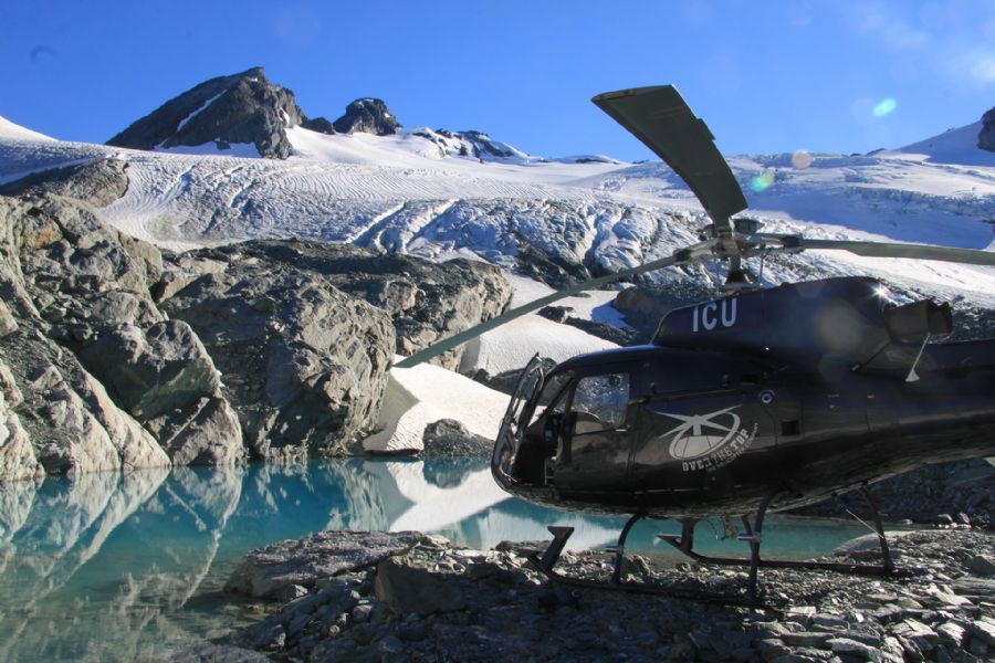 Where the Sound reaches the Tasman Sea, you will head north and land on a remote West Coast beach with time to take a stroll and spot some of the nearby wild animals and seal colonies. From the beach, the helicopter turns inland to the glacier areas where you will land high up on a deserted glacier, allowing you time to explore, breathe in the pure alpine air and take more photographs of this magical place. The flight back to Queenstown from the glaciers will then take you high above the alpine lakes and rivers and, finally, over Lake Wakatipu back to the helicopter base.