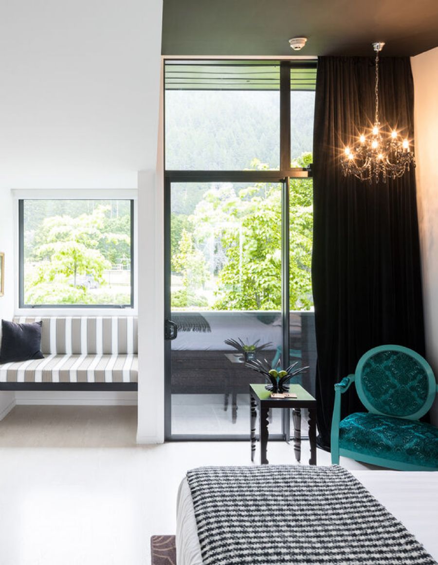 Views of Queenstown’s alpine gondola from your luxury room with private outdoor space. Choose a Twin room with two queen-sized beds or a double with a super-king bed. These stylish and contemporary guest rooms are self-contained with a kitchenette and feature a glass-walled bathroom and subtle chandelier lighting. Each room also opens onto a courtyard and faces Queenstown’s Skyline Gondola.