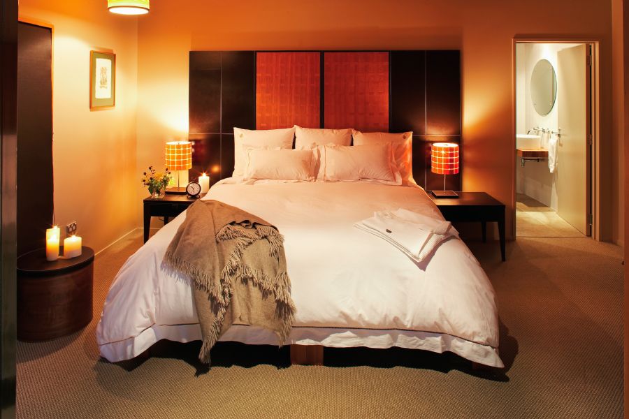 This bedroom faces west and enjoys the afternoon sunshine. It also features two king-single size beds or can be formed into a super king-size bed. This room provides a glimpse of Mount Pihanga, to the east of the Tongariro National Park. Both The Tongariro Room and The Ngauruhoe Room share a large beautifully appointed bathroom featuring an over-sized bath, large walk-in shower and underfloor heating.