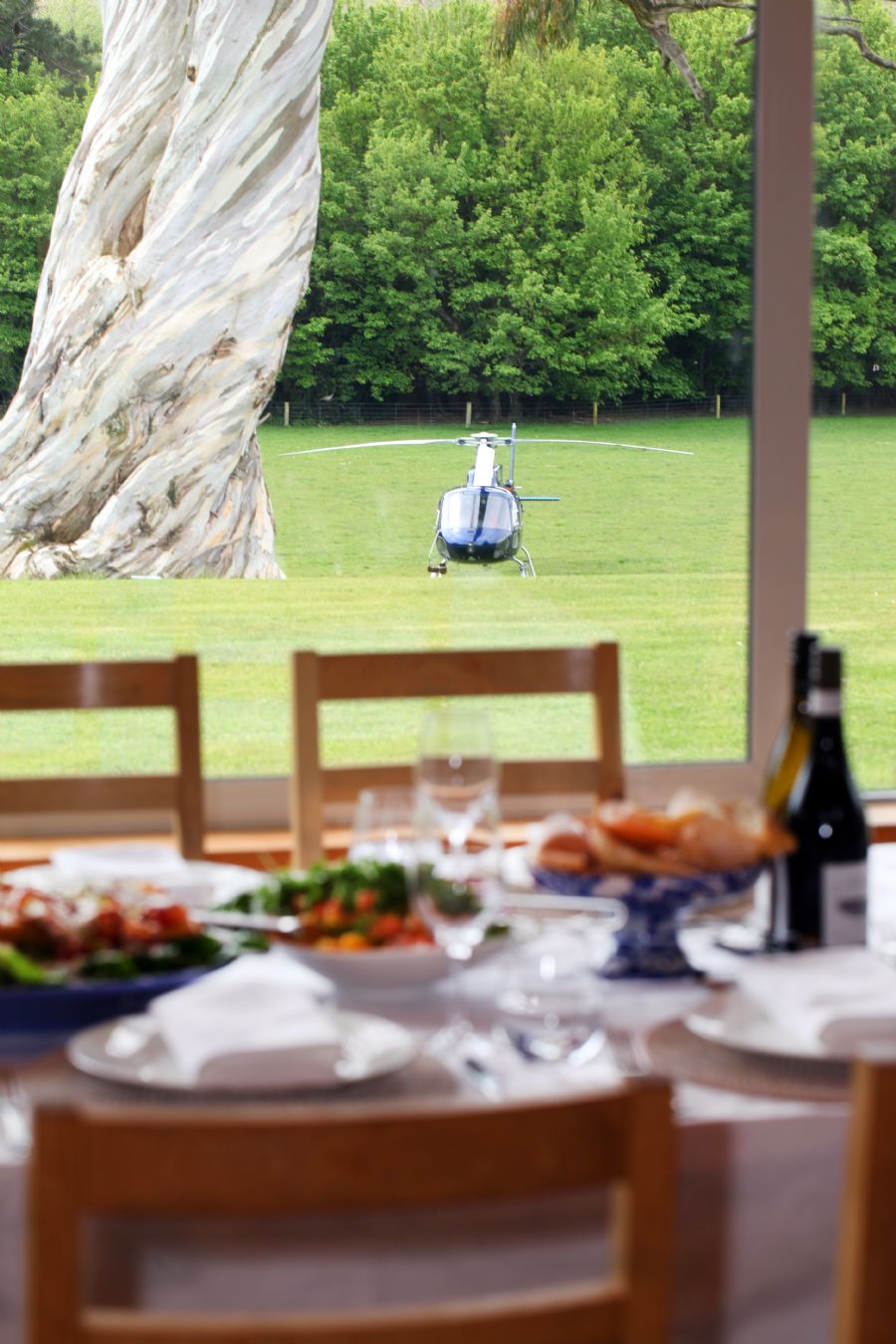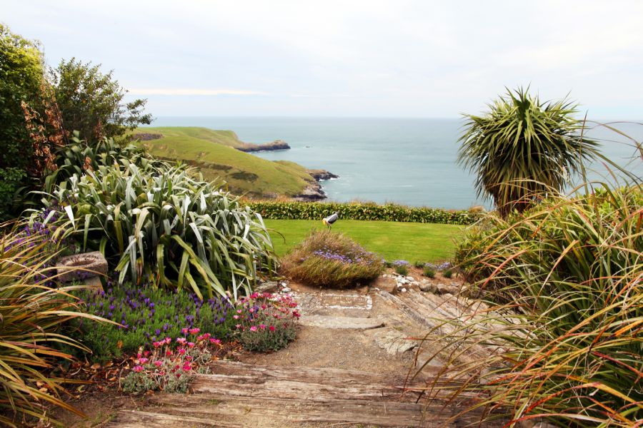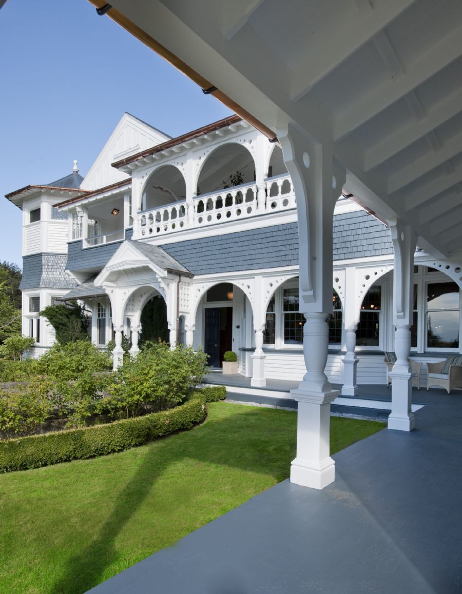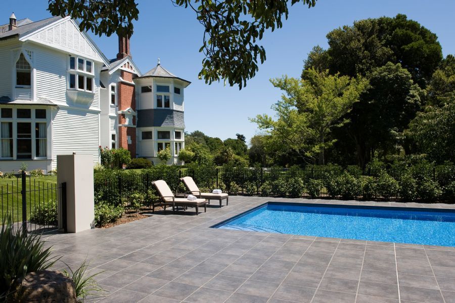 The Clark Suite features a soft yellow and blue design scheme that draws its inspiration from the expansive stained glass windows. A stunning Brunschwig & Fils fabric along with original oil paintings of the nearby seaside town of Akaroa distinguish this lovely space. A wood-burning fireplace and spa tub are also found in the suite.