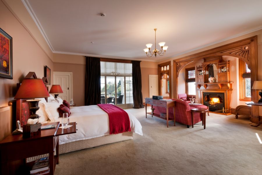 Featuring a thirty-foot long terrace that runs across the front of this lovely suite, the Verandah Suite is filled with light and offers striking views of the Canterbury plains. This lovely room is believed to have hosted HRH the Duke of York (later King George VI), a guest of the Lodge when he stayed in 1927. A wood-burning fireplace in both the bedroom and en suite bathroom add to its romantic nature.