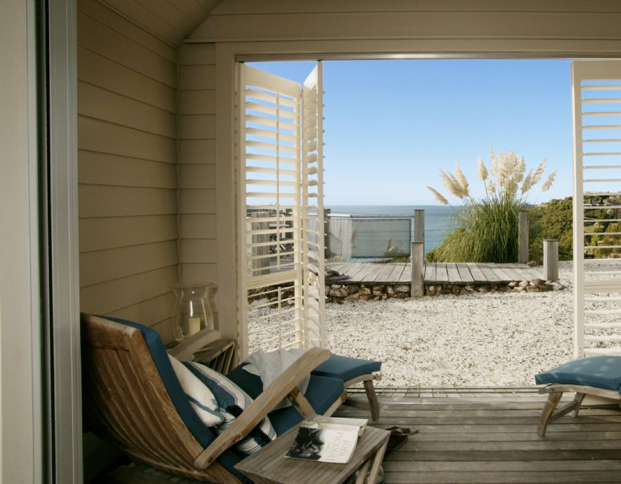 BoatshedsThe three Boatsheds all have a nostalgic beach hut feel; open up the louvered shutters to the gardens and enjoy the sea breezes from teak sun loungers on your private deck. As the evening falls move inside and light the fire, pour a glass of wine and relax.