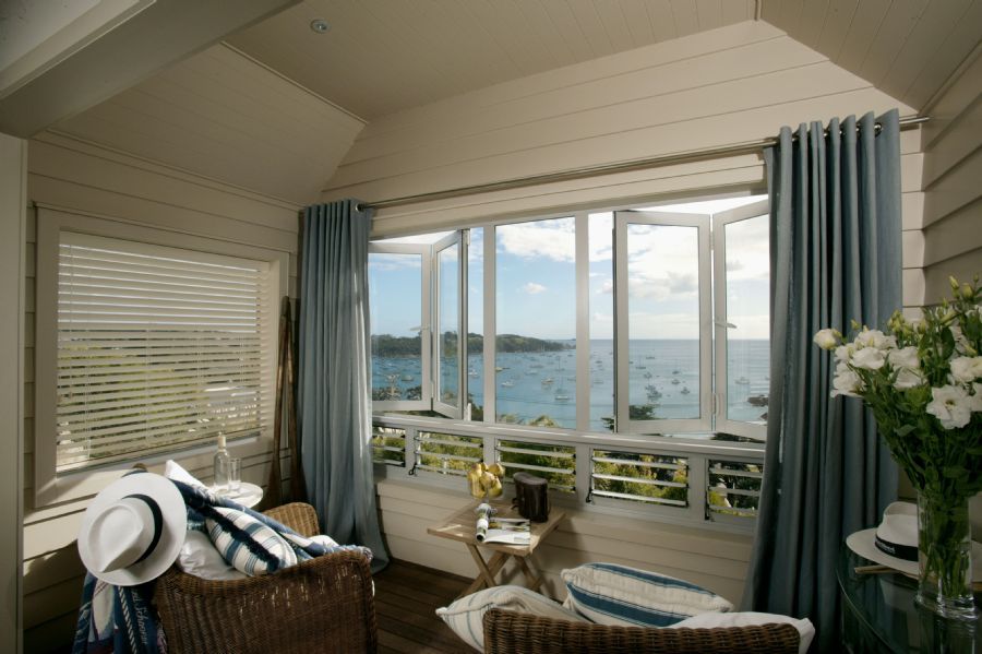 LighthouseOne of the most romantic and unique Boatshed luxury hotel suites; spiral up the three storey tower, past the white washed wooden bedroom luxury hotel room to the day room in the top, fold back the glass doors and open the room wide - daydream while you watch the boats come and go from the bay like the lighthouse keeper may.