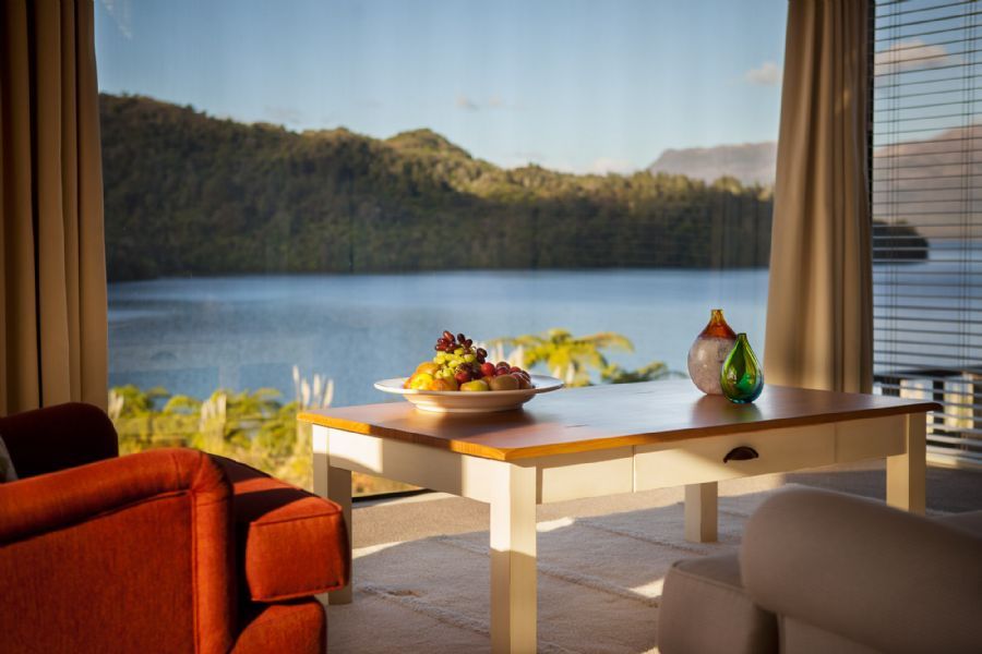 Each Executive suite offers spectacular views overlooking Lake Tarawera, lavish super king beds, comfortable chairs for lounging, grand picture windows and a private balcony with stunning vista. Freestanding baths big enough for two, overlooking the Lake give you the opportunity to soak in the view.