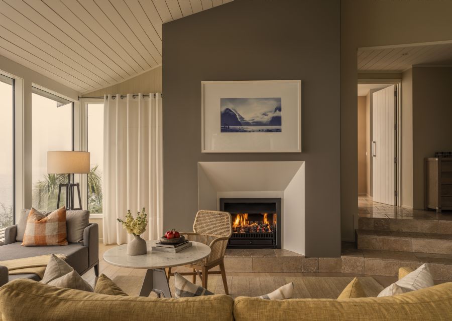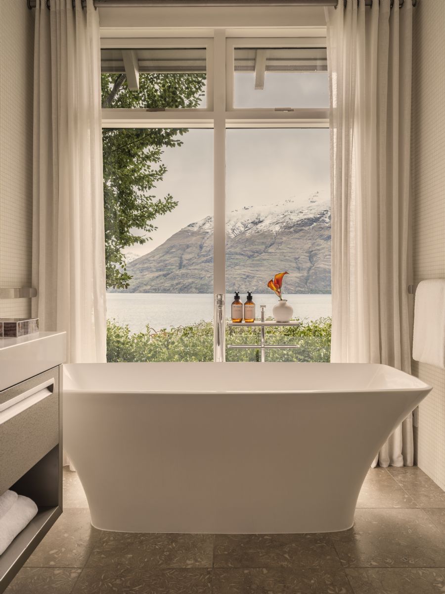 The Grand Lake View Suites at Rosewood Matakauri offer an experience of unforgettable grandeur. Generously proportioned, these suits feature bedrooms on a secluded mezzanine floor and boast spectacular mountain vistas from their spacious bathrooms and oversized baths. Furnished with contemporary, modern interiors, these suites provide panoramic views, encapsulating the breathtaking beauty of the surroundings.