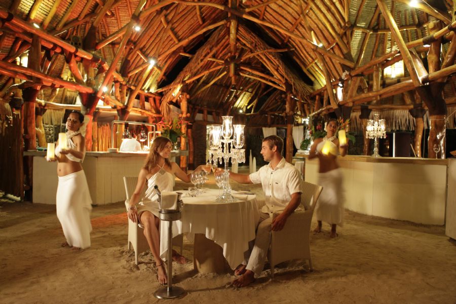 Named after the local Kahaia tree from which its beams and roof are made, K restaurant is the ideal place to enjoy a romantic dinner. Its use of tropical woods, thatched roof and natural stones creates a magical setting where you can enjoy world-class cuisine at one with nature. With candlelit tables for two and sparkling views over the lagoon guests can choose to dine on one of the outdoor tables that spills down to the water's edge, or under the beautiful thatched roof.