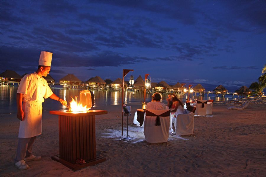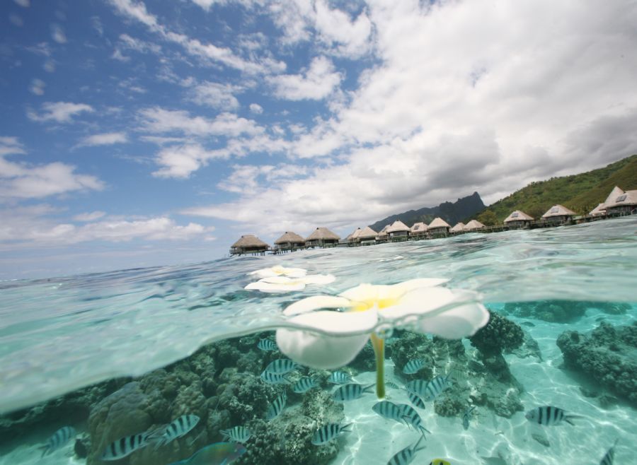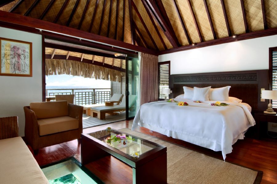 Relax in this contemporary 62m²/667sq.ft bungalow. Take in spectacular lagoon views or the majestic mountain views of Moorea. Luxuriate in the elegant marble bathroom with its rain shower and separate claw footed tub. Watch movies on the 37-inch flat screen TV, listen to your favorite music on the iPod station or surf the web with high-speed internet access (Wi-Fi). It also offers a private sun deck with lounge chairs and table and direct access to the lagoon. Enjoy the spectacular array of exotic marine life float past the glass floor-viewing panels.