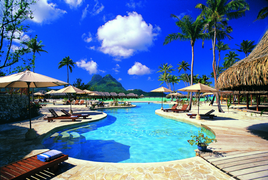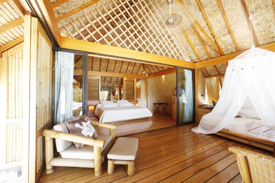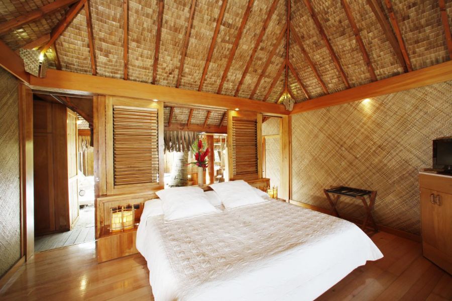 Ideally located right on the beach, the Beach Villa with Pool is the largest room category with 1545 square feet. Built in Polynesian architecture and style, those rooms are enclosed in their own private garden and feature a spacious bedroom area, an indoor shower, comfortable living room opening onto the beach and dazzling views of the lagoon, majestic Mount Otemanu, and a pool.