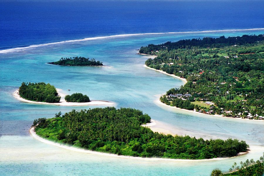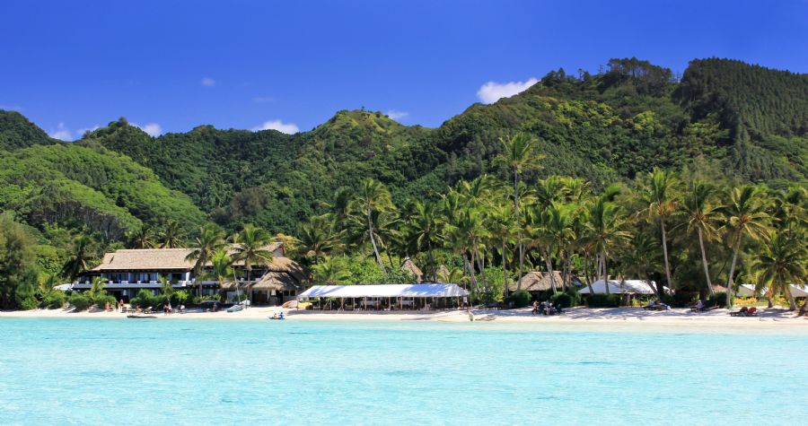 The white sands of Muri Beach stretch for one kilometer along the southeastern coast of the island and is home to four offshore islets (motus).