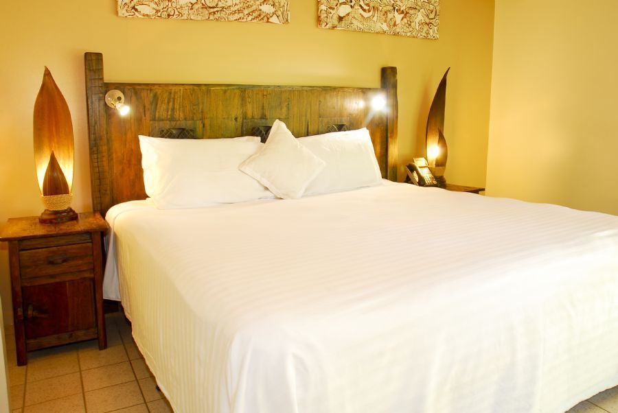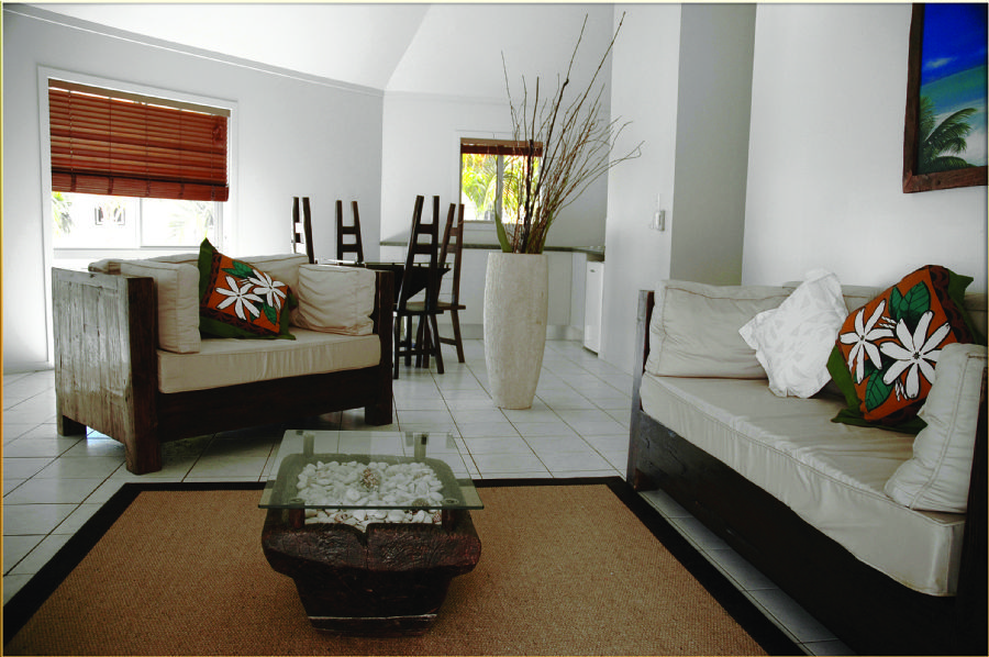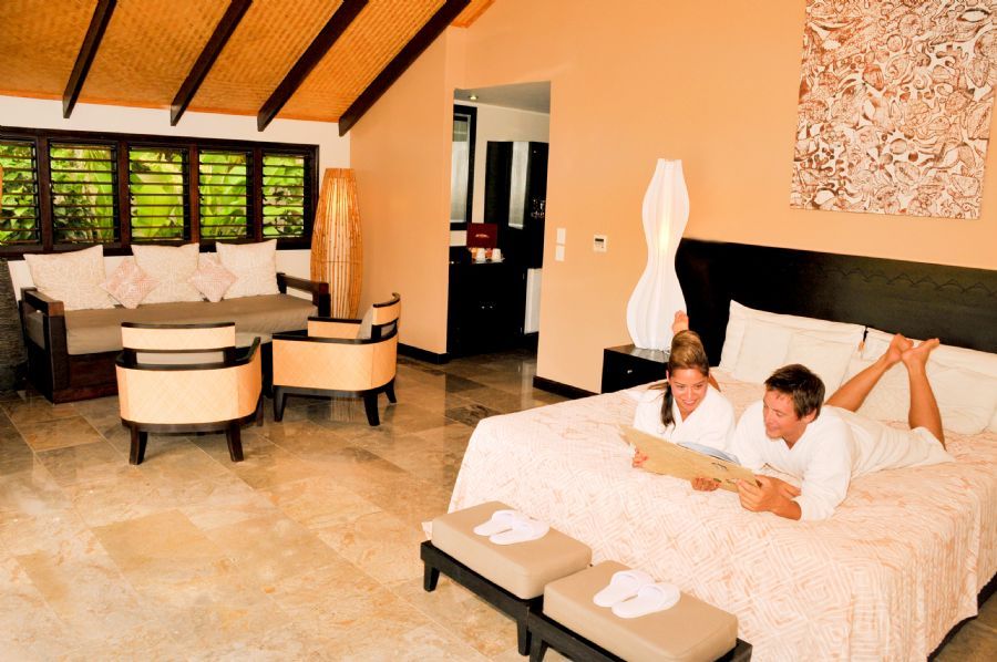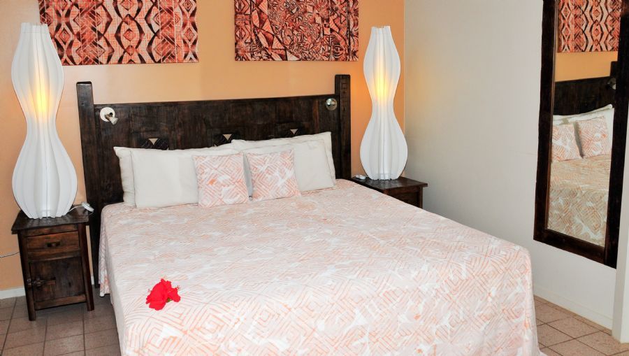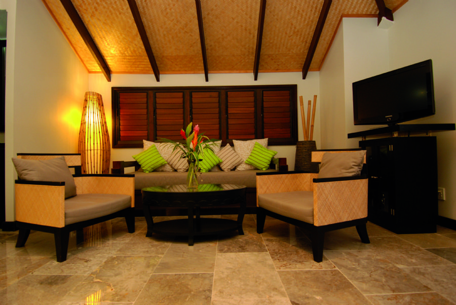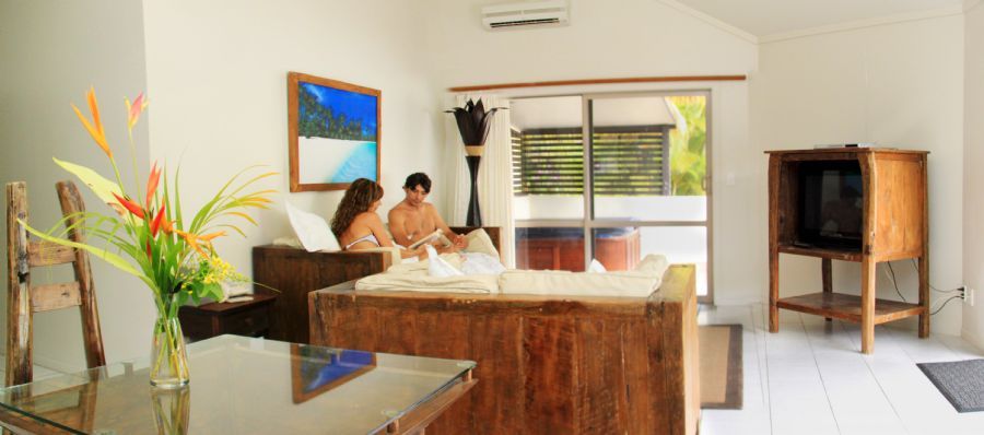 One bedroom villas feature a private king bedroom, separate bathroom, lounge & entertainment center and kitchen with dining for 2-3 people. The villas are comfortable & stylish with a warm Polynesian ambiance.