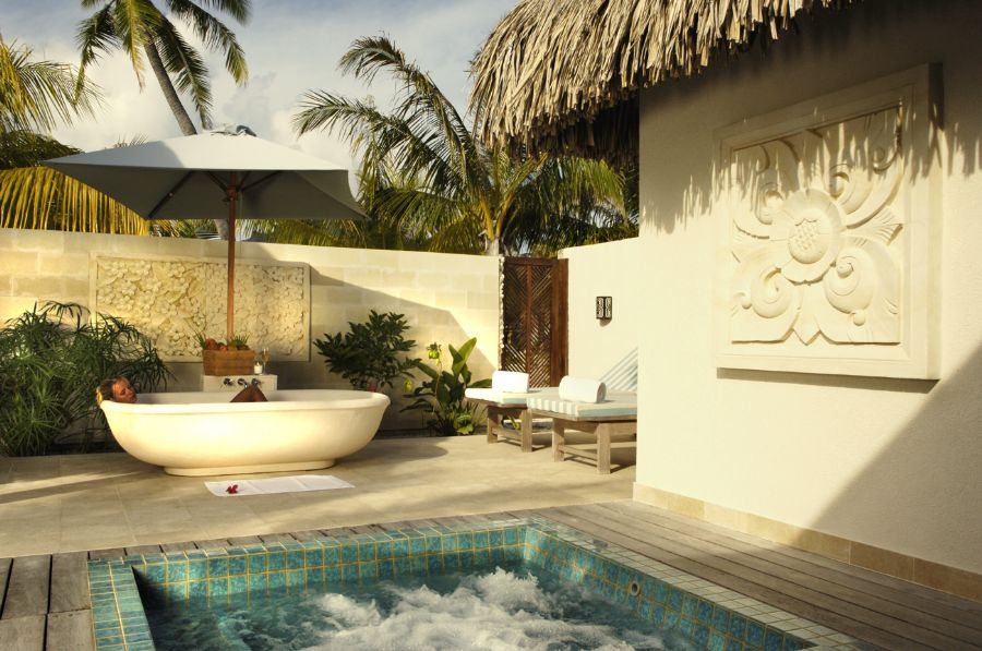 Artistic in every detail, our One-Bedroom Villas fulfill island desires thanks to a private garden with outdoor shower and plunge pool, and captivating views of powdery white sand beaches and turquoise waters. Indoors, a living room and separate bedroom combine enchanting Polynesian details with state-of-the-art amenities, including a Bose Sound System and Wi-Fi. (1,636-2,702 Square Feet / 152-251 Square Meters)