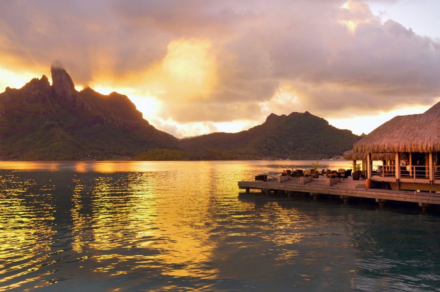 Strategically built around its own private pool, on the edge of the turquoise lagoon, our Royal Overwater Two-Bedroom Pool Villas boast two bedrooms, two bathrooms, and a private terrace with two dining gazebos, a pool, and breathtaking views of Mount Otemanu. (2,852 Square Feet / 265 Square Meters)