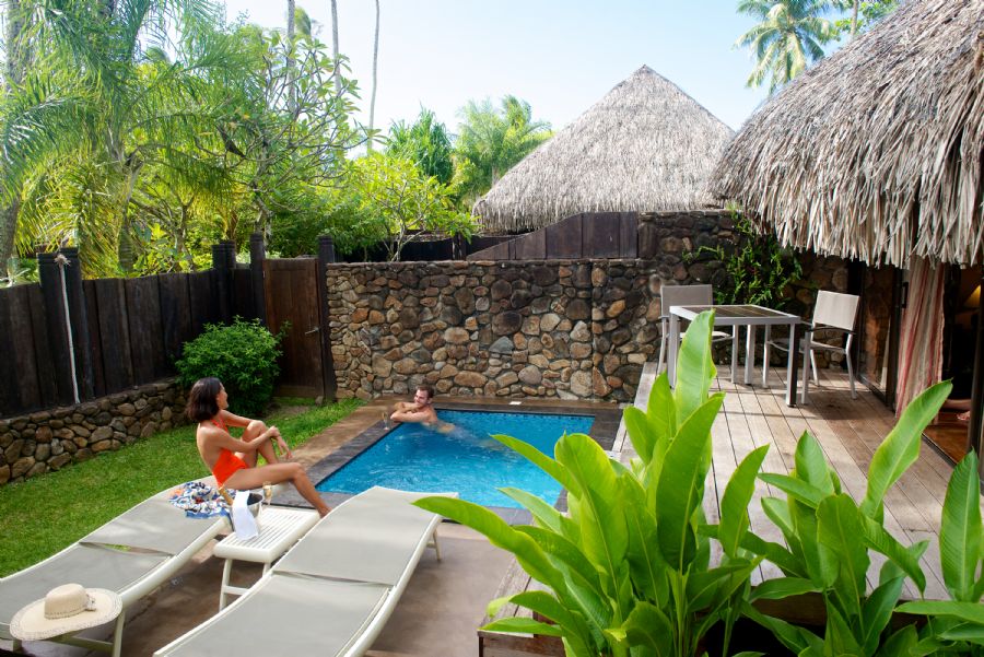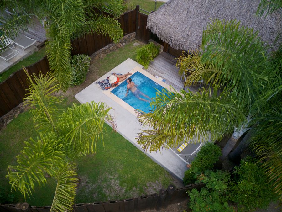 The Garden Pool Bungalows have a small private pool on the veranda. The garden bungalows feature one king bed and one single bed and a patio with garden view. They are located at the garden.